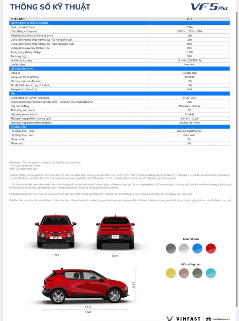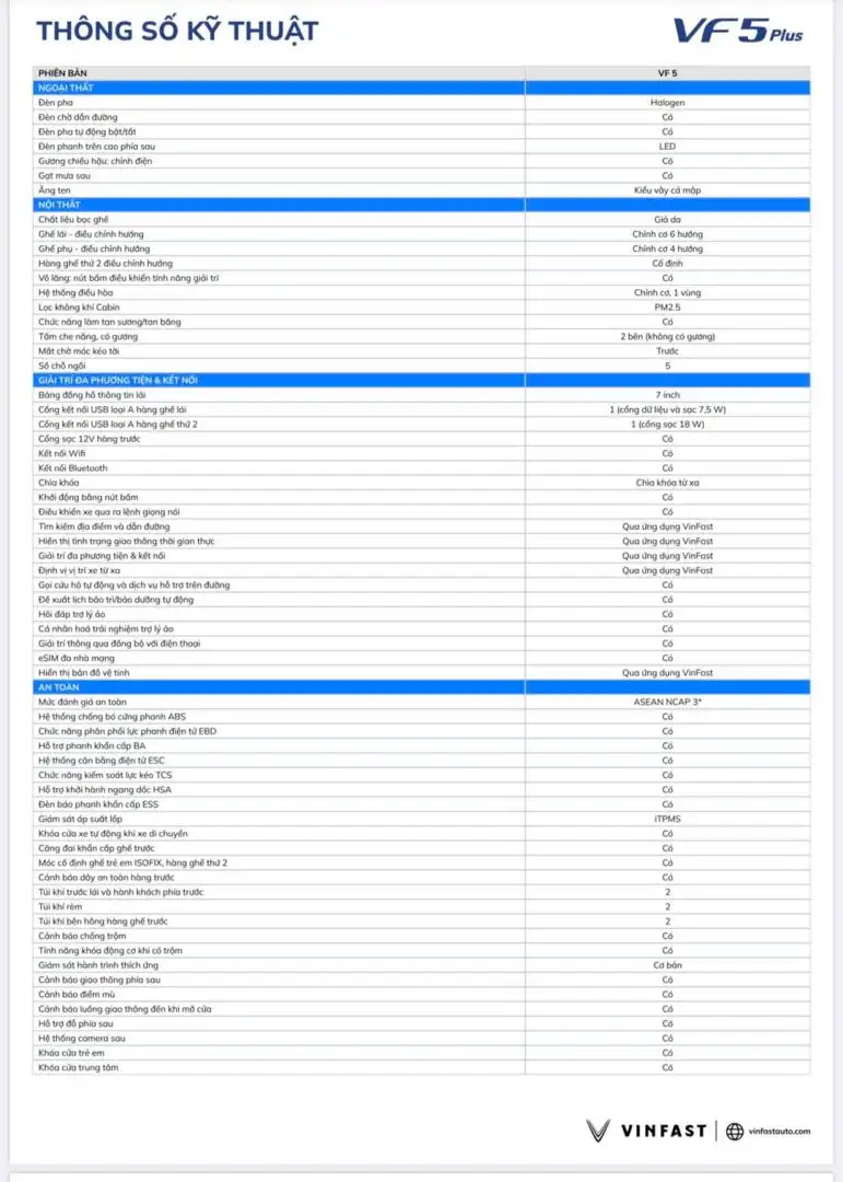 THÔNG SỐ KỸ THUẬT XE VINFAST VF 5